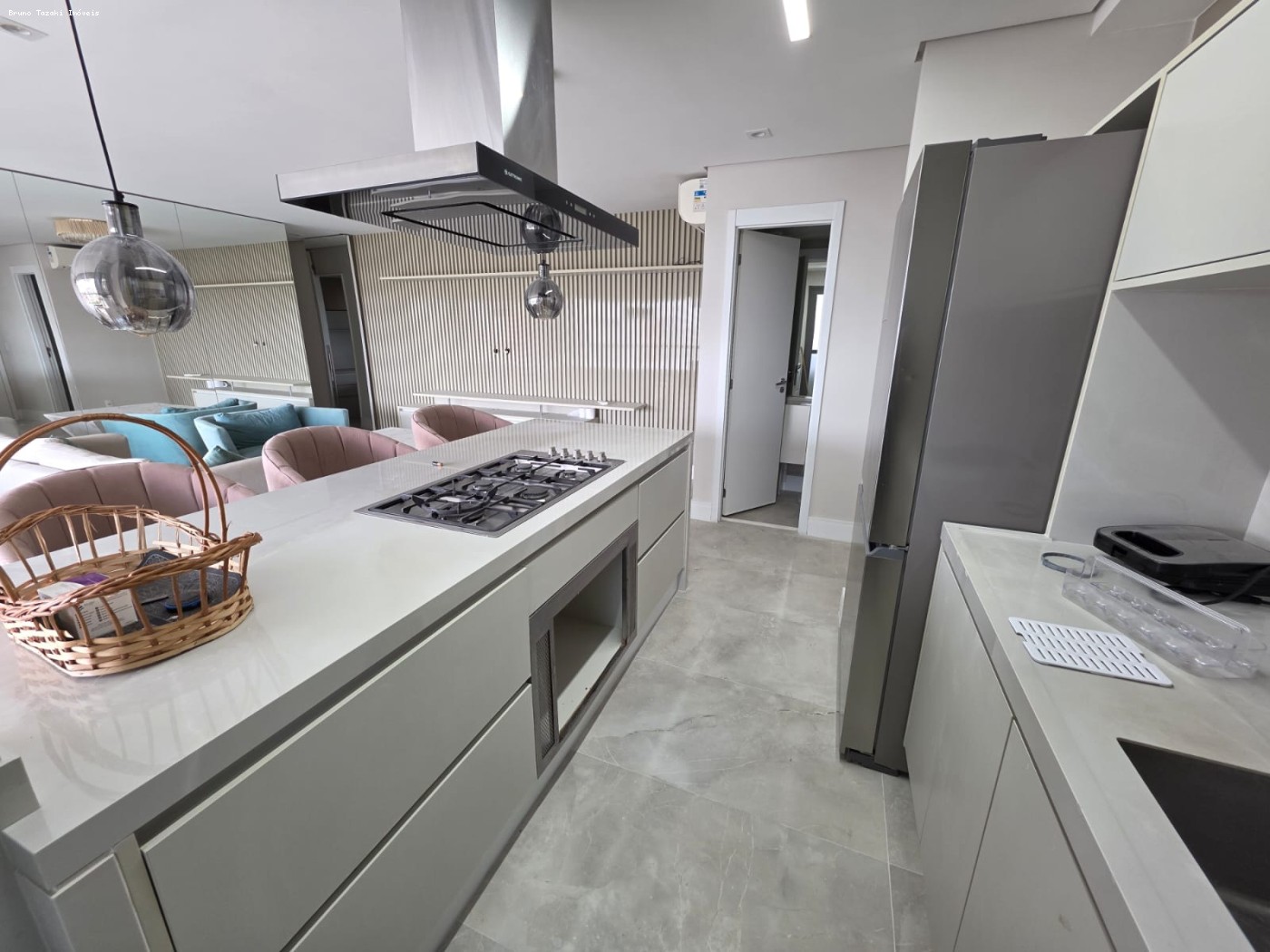 A área interna destaca acabamentos de bom padrão, pisos em porcelanato, portas de correr de alumínio e iluminação natural abundante, que realça a amplitude da sala de estar com acesso à varanda, proporcionando momentos de relaxamento com vista para a paisagem urbana. Na cozinha, o layout funcional permite otimizar o preparo das refeições, enquanto a área de serviço integrada traz praticidade ao cotidiano.